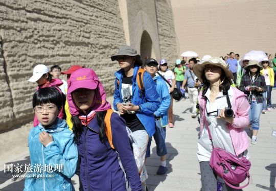 國家旅游地理 甘肅酒泉8月10日訊 8月10日,游客在嘉峪關城門前參觀。近一個月來,我國許多地區(qū)持續(xù)高溫天氣,西北地區(qū)成為眾多游客逃離酷暑、納涼觀光的好去處。據(jù)了解,目前甘肅省內各大旅行社絲綢之路旅游線路預訂火爆。敦煌莫高窟、嘉峪關等多個景區(qū)游客爆滿,賓館甚至出現(xiàn)一房難求的現(xiàn)象,旅游部門提醒有出游需求的游客盡量提早預訂,保證順利出游。 /新華社記者 陳斌 攝