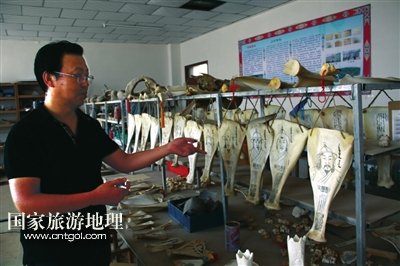 抱著十分好奇的心態(tài),記者決定前去探訪。在鄂托克前旗宣傳部一位工作人員的指引下,記者來到了鄂托克前旗民族職業(yè)高中的教學樓辦公室,見到了哈斯達來老師。因為整個辦公室內(nèi)有許多骨雕、沙雕等許多藝術作品,所以看上去有些凌亂。