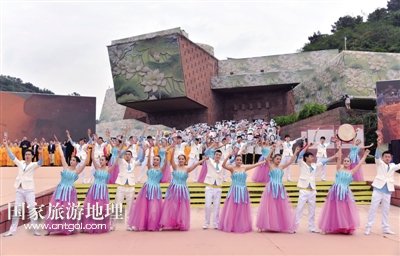 開幕式上,以“慈光千年·與夢(mèng)同行”為主題的旅游演出《一山·一佛·一世界》,分為序——《慈光·千年》、上篇——《一山·情依舊》、中篇——《一佛·慈天下》、下篇——《一世界·心若在》、尾聲——《與夢(mèng)·同行》五大段落,通過(guò)梵音梵樂(lè)、音樂(lè)舞蹈等形式,精彩演繹樂(lè)山彌勒文化、普賢文化、漢唐風(fēng)韻等文化內(nèi)涵。/三江都市報(bào)