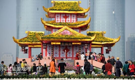 國家旅游地理 江西南昌11月7日訊 菊花展上微縮版“滕王閣”高9米(11月7日攝)。11月7日,在江西南昌市紅谷灘新區(qū)舉行的第25屆菊花展上,100萬盆各色菊花爭奇斗艷,吸引了眾多游客和市民前來觀賞。 /新華社記者 周科 攝
