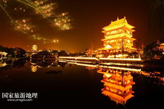 國家旅游地理 山東棗莊4月22日訊 這是夜色下的臺兒莊古城復興樓(4月8日攝)。1938年春的臺兒莊大戰(zhàn),是抗日戰(zhàn)爭爆發(fā)后中國軍隊在正面戰(zhàn)場取得的一次重大勝利。臺兒莊是世界著名的二戰(zhàn)紀念城市,有著2000多年歷史的臺兒莊古城完好地保存著53處戰(zhàn)爭遺跡。