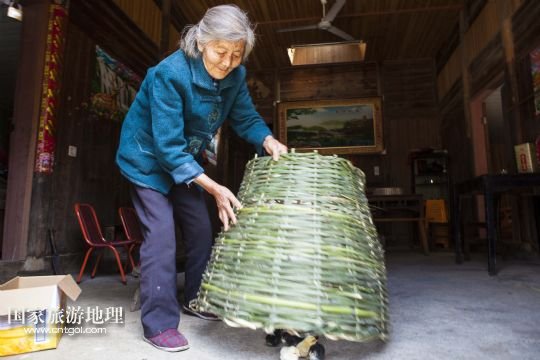 5月11日,土目源村89歲的王冬花老人在石屋前為孫女梳頭。