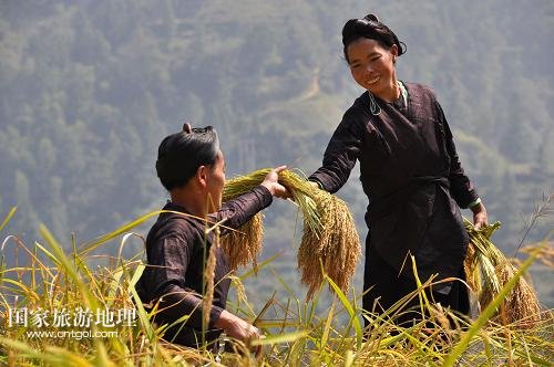 國(guó)家旅游地理 貴州黔東南10月11日訊 10月10日,在貴州省黎平縣順化瑤族鄉(xiāng)高孖村,瑤族群眾在收獲香禾糯。2013年以來(lái),貴州省黔東南苗族侗族自治州黎平縣充分利用當(dāng)?shù)氐锰飒?dú)厚的生態(tài)環(huán)境,采用傳統(tǒng)選育技術(shù),大量種植香禾糯。日前,當(dāng)?shù)剞r(nóng)戶(hù)今年種植的5萬(wàn)畝香禾糯喜獲豐收。香禾糯是貴州省黎平縣國(guó)家地理標(biāo)志保護(hù)產(chǎn)品,是當(dāng)?shù)馗髯迦嗣裨陂L(zhǎng)期的生產(chǎn)生活中選育栽培出來(lái)的優(yōu)良糯稻品種。新華社發(fā)(楊代富 攝)