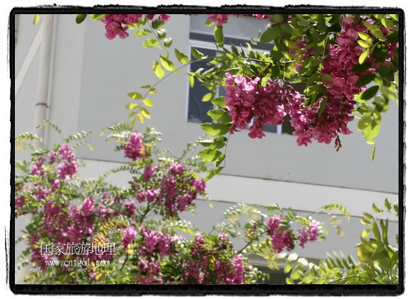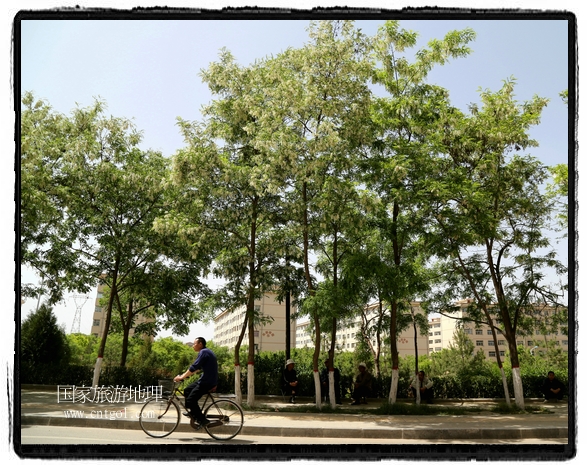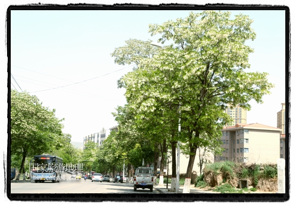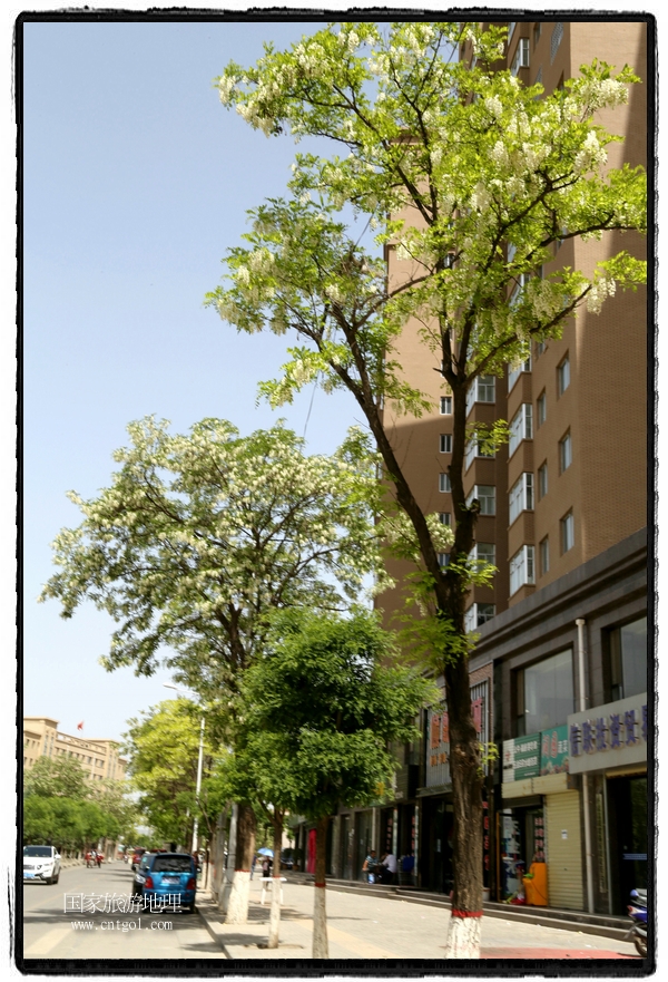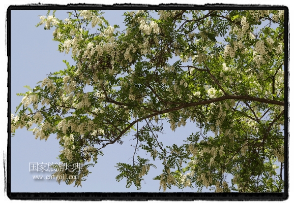 國家旅游地理 甘肅平?jīng)?月31日訊(通訊員 鄭兵 攝影報(bào)道)日前,甘肅省平?jīng)鍪谐菂^(qū)各大主要街道兩旁的槐樹開滿花朵,一簇一簇,一串一串,白的像雪,美得像畫,冰肌綽約,清素高雅,滿街道彌漫著槐花的馥郁香氣,讓來往的行人為之陶醉。宋朝大文豪蘇東坡曾有詩云:“槐林五月蕩瓊花,郁郁芬芳醉萬家。”據(jù)悉,槐花除了觀賞意外,用槐花做的湯飯還有開胃解毒瀉火等功效,是食藥兩用的的極品,被譽(yù)為“天賜的禮物”。