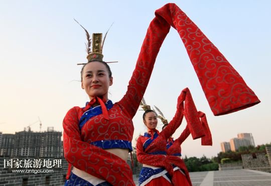 國(guó)家旅游地理 山東滕州6月14日訊 6月13日,在山東省滕州市老縣衙善國(guó)文化廣場(chǎng),滕州柳琴劇團(tuán)演員向市民展演柳琴戲。