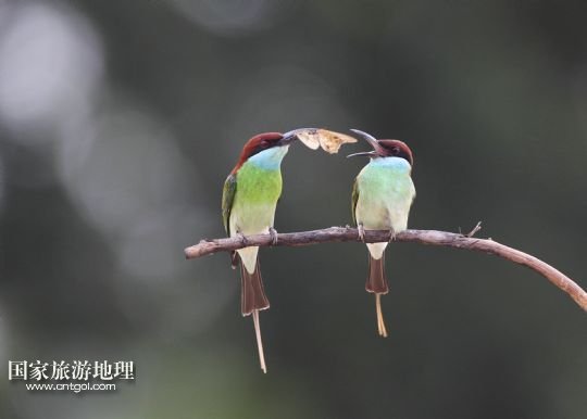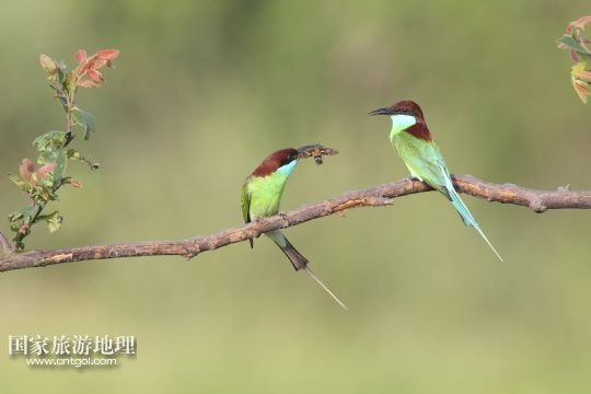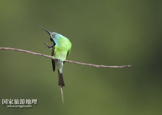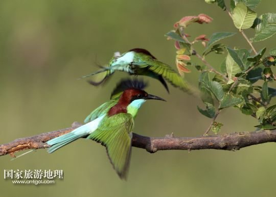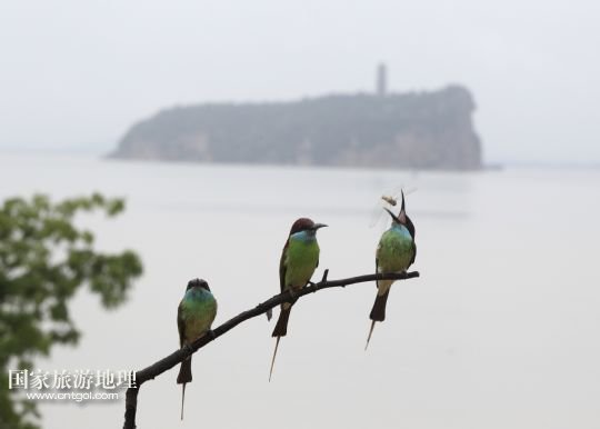 國(guó)家旅游地理 江西九江6月14日訊 6月14日,藍(lán)喉蜂虎在鄱陽(yáng)湖畔的樹枝上休憩。進(jìn)入夏季以來(lái),位于我國(guó)第一大淡水湖江西鄱陽(yáng)湖畔的九江市廬山區(qū)姑塘鎮(zhèn)迎來(lái)了眾多美麗的小鳥藍(lán)喉蜂虎。