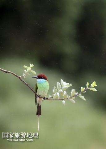 藍(lán)喉蜂虎屬蜂虎科鳥類,羽色艷麗,極具觀賞價(jià)值。/新華社發(fā)(沈俊峰 攝)